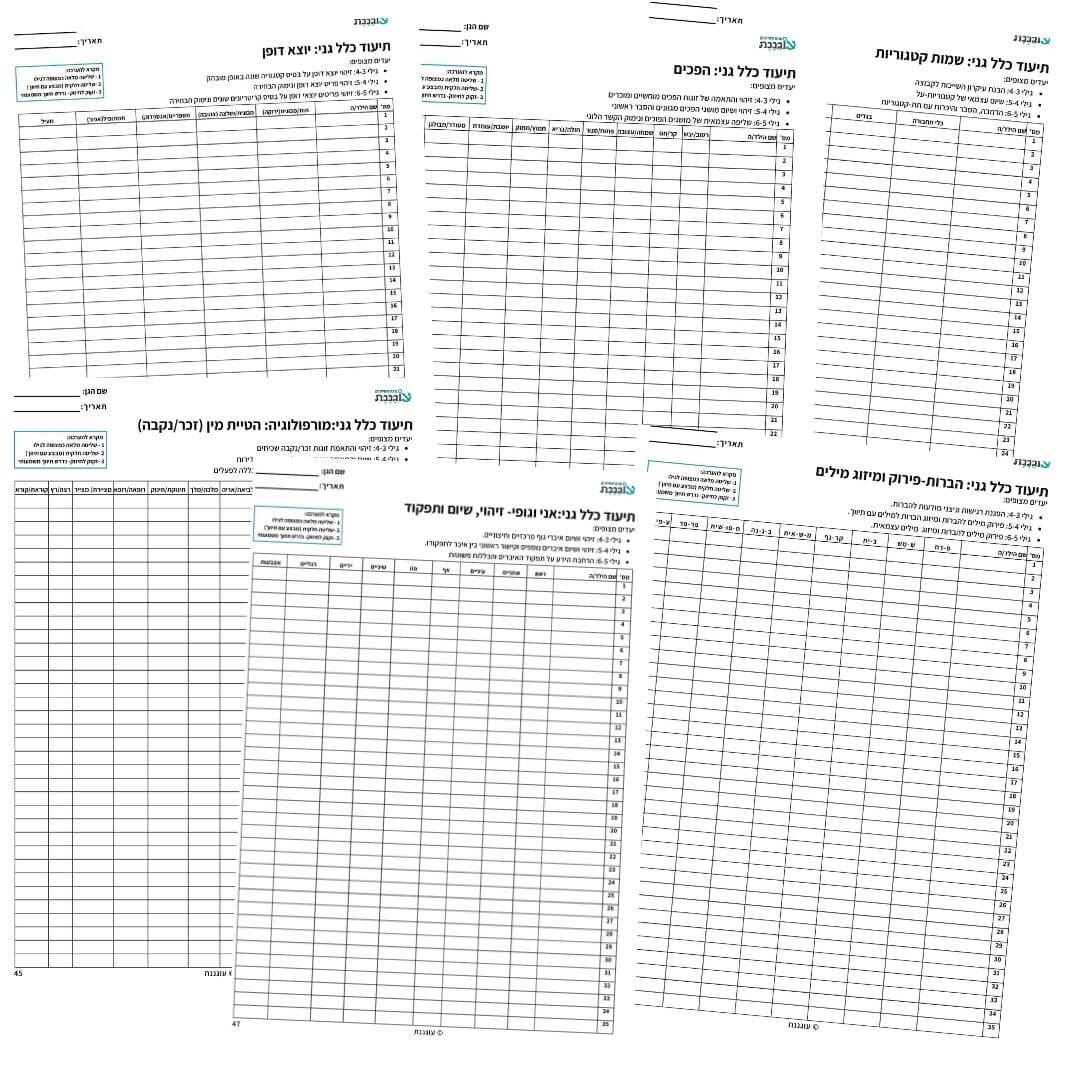 טבלאות תיעוד המאפשרות לך, הגננת, לא רק לתעד את מיפוי כל ילדי הגן במקום אחד, אלא גם לנתח את הנתונים, להשוות בין ילדים ולזהות מגמות התפתחותיות בקבוצה. זהו כלי חיוני לתכנון פעילויות מותאמות ולמעקב אחר התקדמות הגן כולו! נשלח במייל גם כקובץ אקסל להדפסה ישירה עם שמות כל ילדי הגן